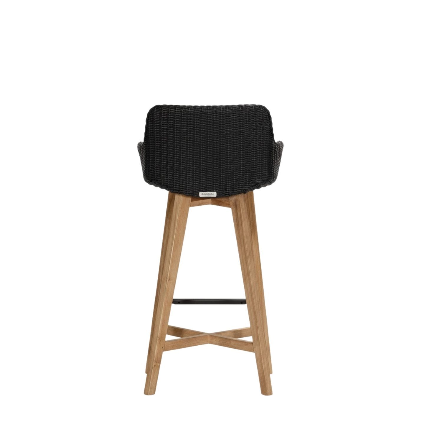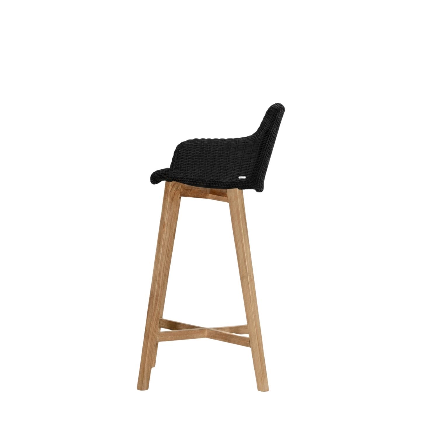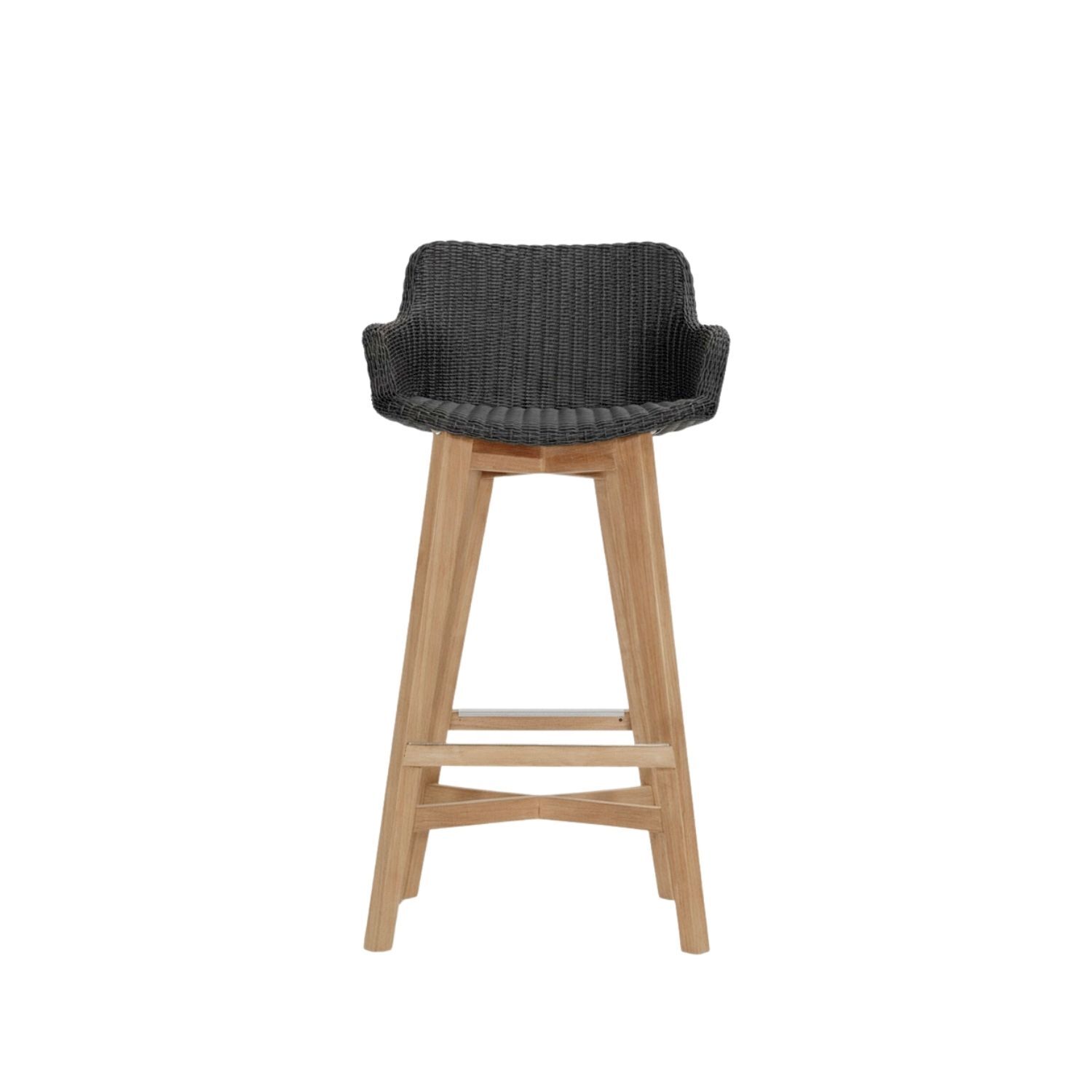 Indulge in comfort and style with the Shell Bar Stool. Its teak legs and synthetic weave seat in a Black hue create a harmonious blend. The 66cm seat height suits kitchen benches approximately 90cm high, making it perfect for both indoor and outdoor use. Elevate your bar or kitchen area today.