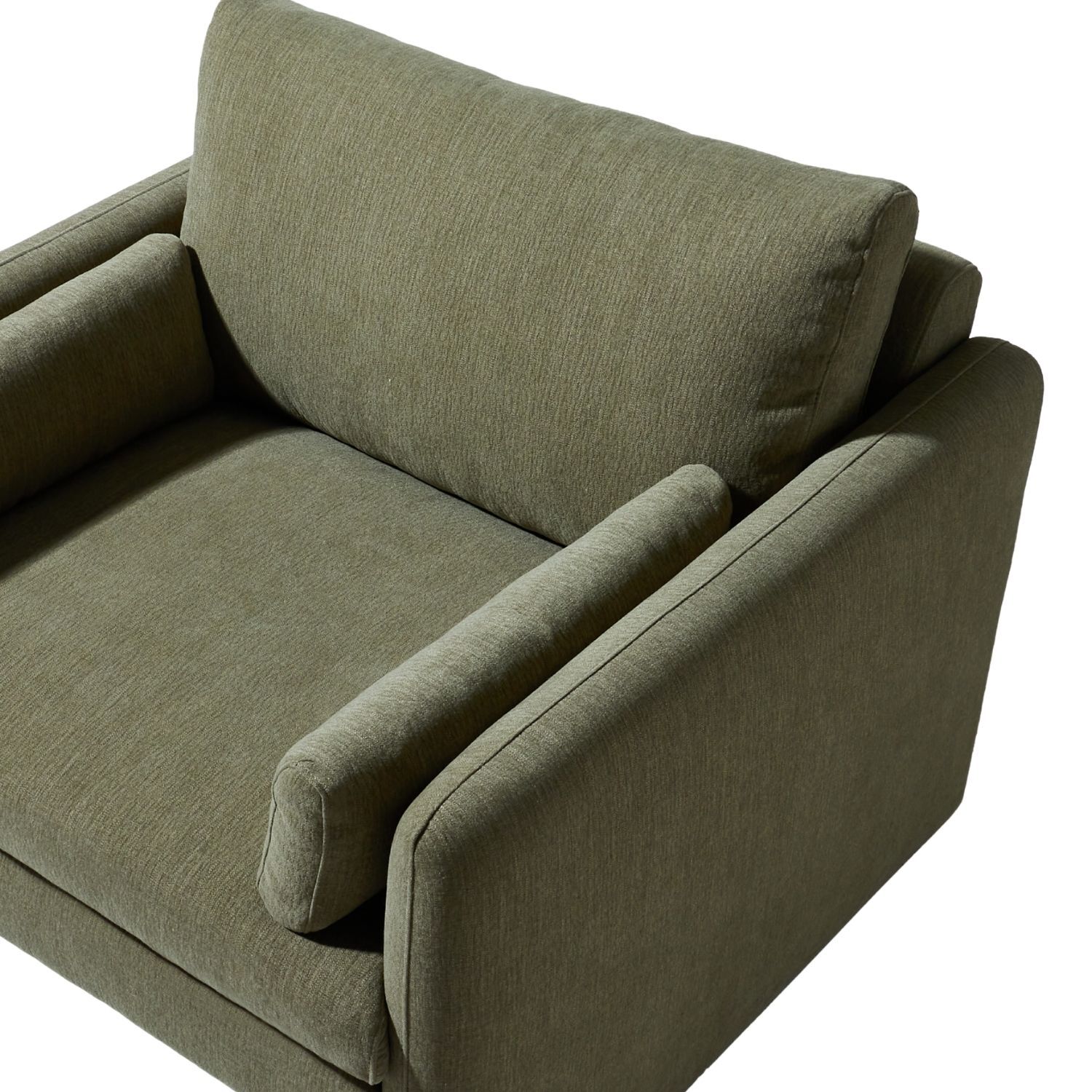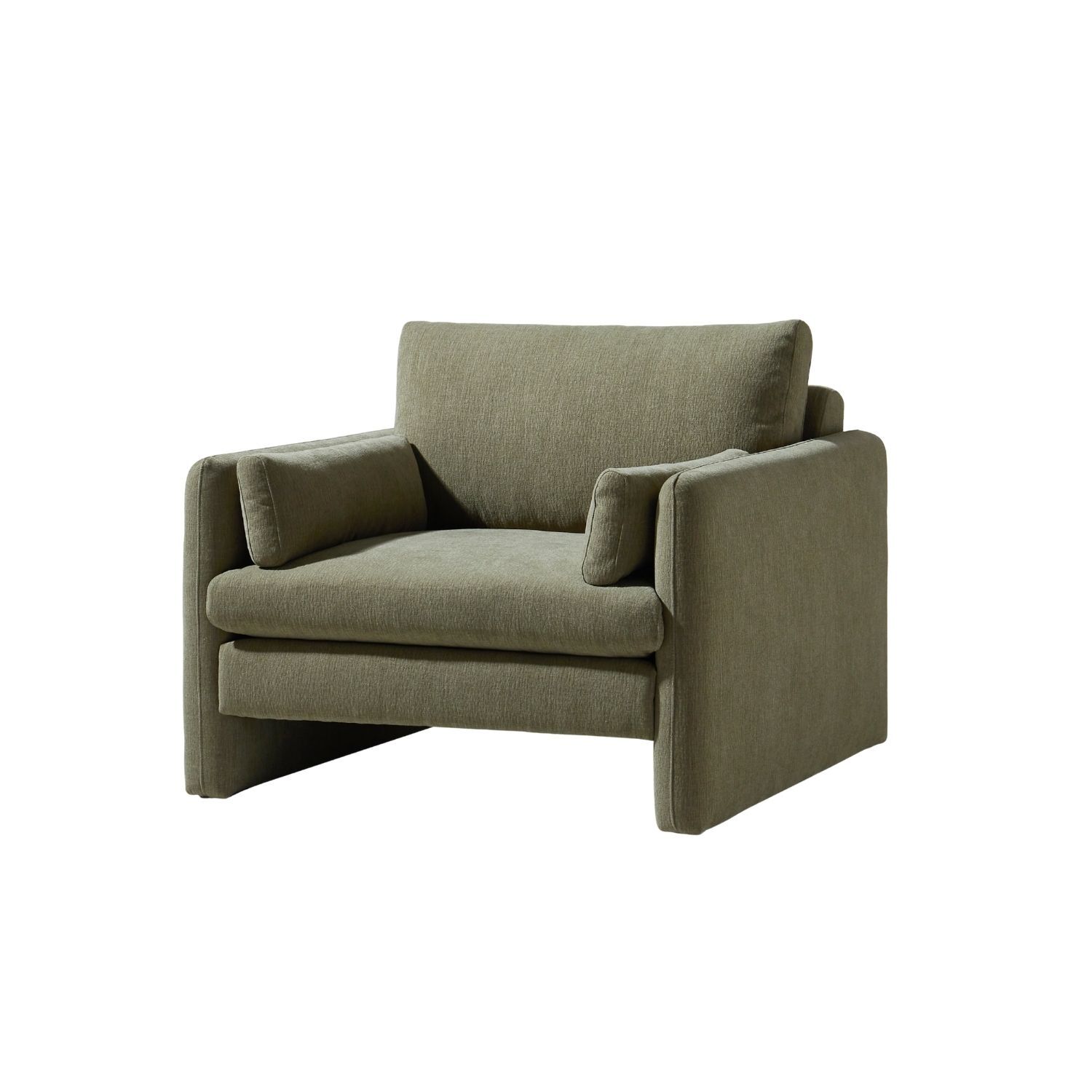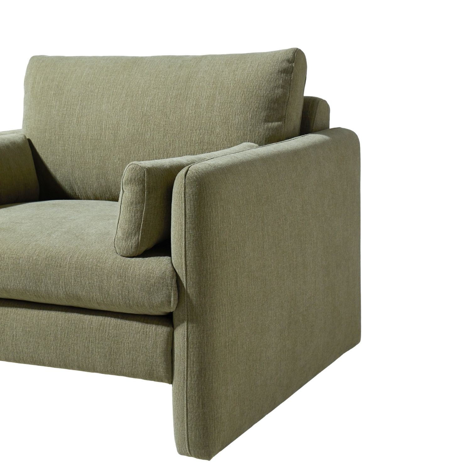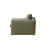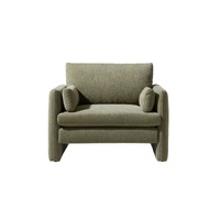 The Sofia Lounge Chair carries the same generous spirit as the sofa in a more intimate scale perfect for smaller living spaces or as a companion piece within a larger room. Deep and enveloping, the plush seat and full back cushion hold you with a softness that is immediate and lasting, while the bolster arm cushions frame the body with a quiet, supportive presence. The fully upholstered sled base completes the form, delivering a seamless silhouette that is both visually calm and deeply liveable.
