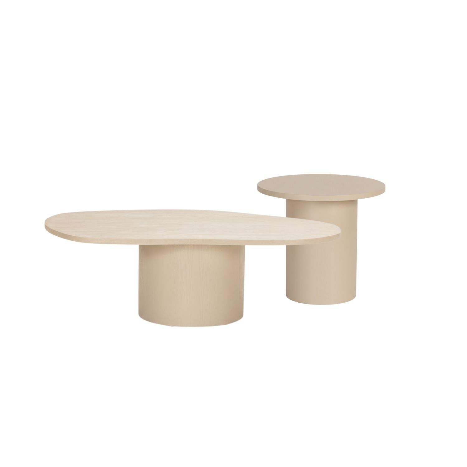 The Taman Coffee Table set offers a seamless blend of organic beauty and modern aesthetics, with its fluid shape and oak construction. Elevate your living space with this striking trio, bringing a touch of elegance to your home while providing functional and flexible coffee table options.