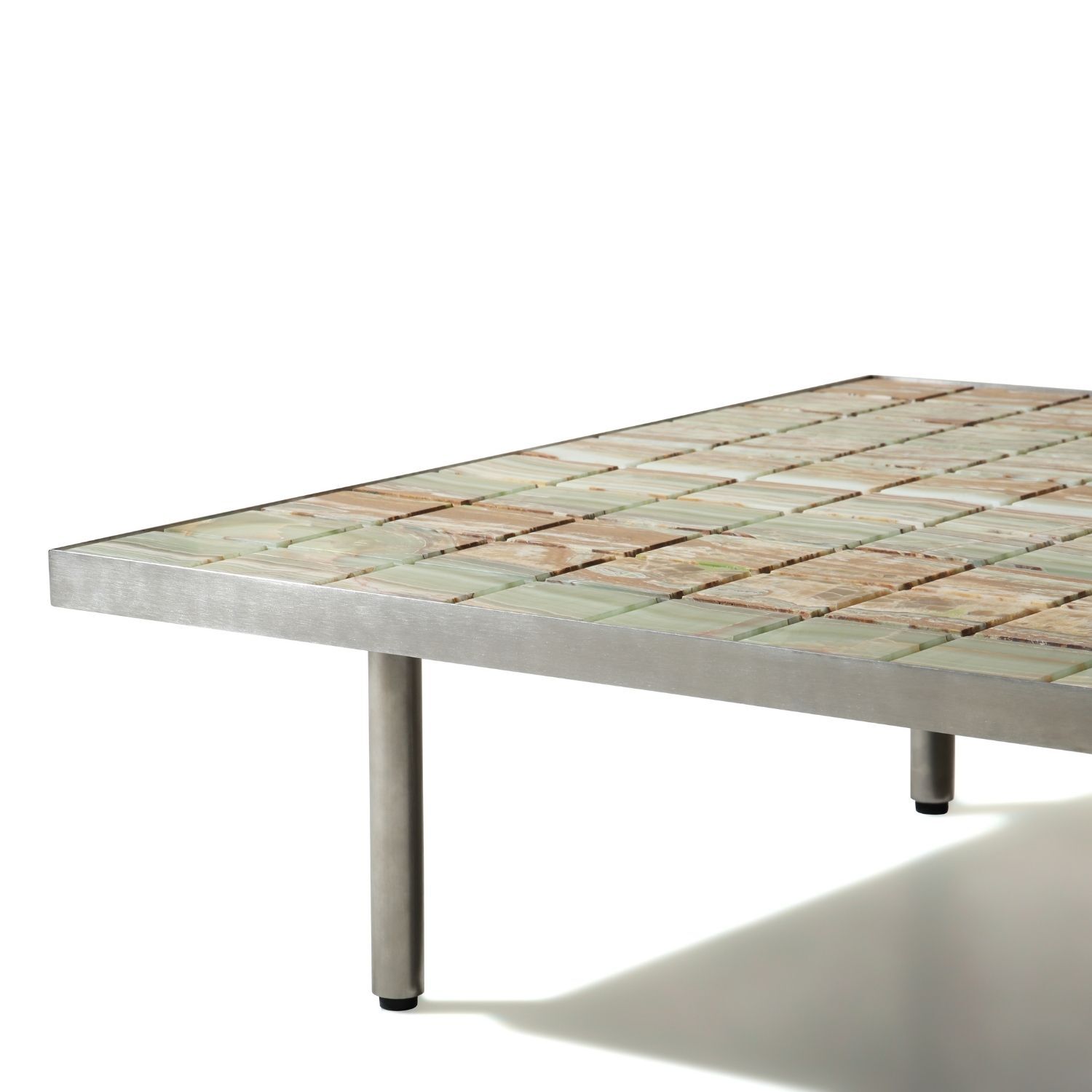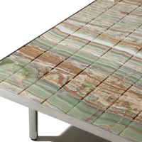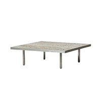 The Terrain Coffee Table is designed for those who appreciate bold yet refined interiors. It's square silhouette is elevated by a brushed stainless steel frame, offering a sleek look that relfects modernity. Resting atop is a marble slab with intricate slot detailing, adding depth, texture, and an unexpected element of artistry. The interplay of polished stone and industrial metal creates a statement piece that is both commanding and effortlessly elegant. Ideal for contemporary homes, high-end commercial spaces, and design-driven interiors, the Terrain Coffee Table brings a sculptural presence to any setting. Its clean lines and luxurious materials make it a versatile centrepiece, seamlessly complementing both minimalist and layered, collected spaces. Whether styled with curated books, decorative objects, or left unadorned to showcase its raw beauty, this table redefines modern sophistication.
