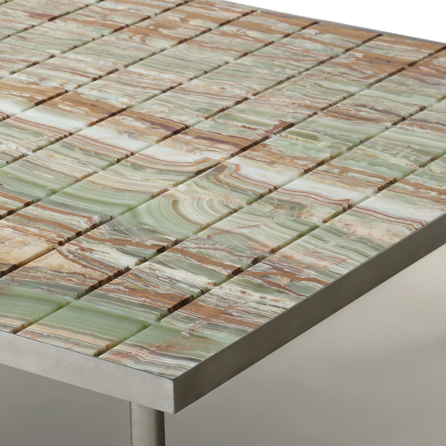 - Materials: Matte Terrain Marble Top, Brushed Stainless Steel base