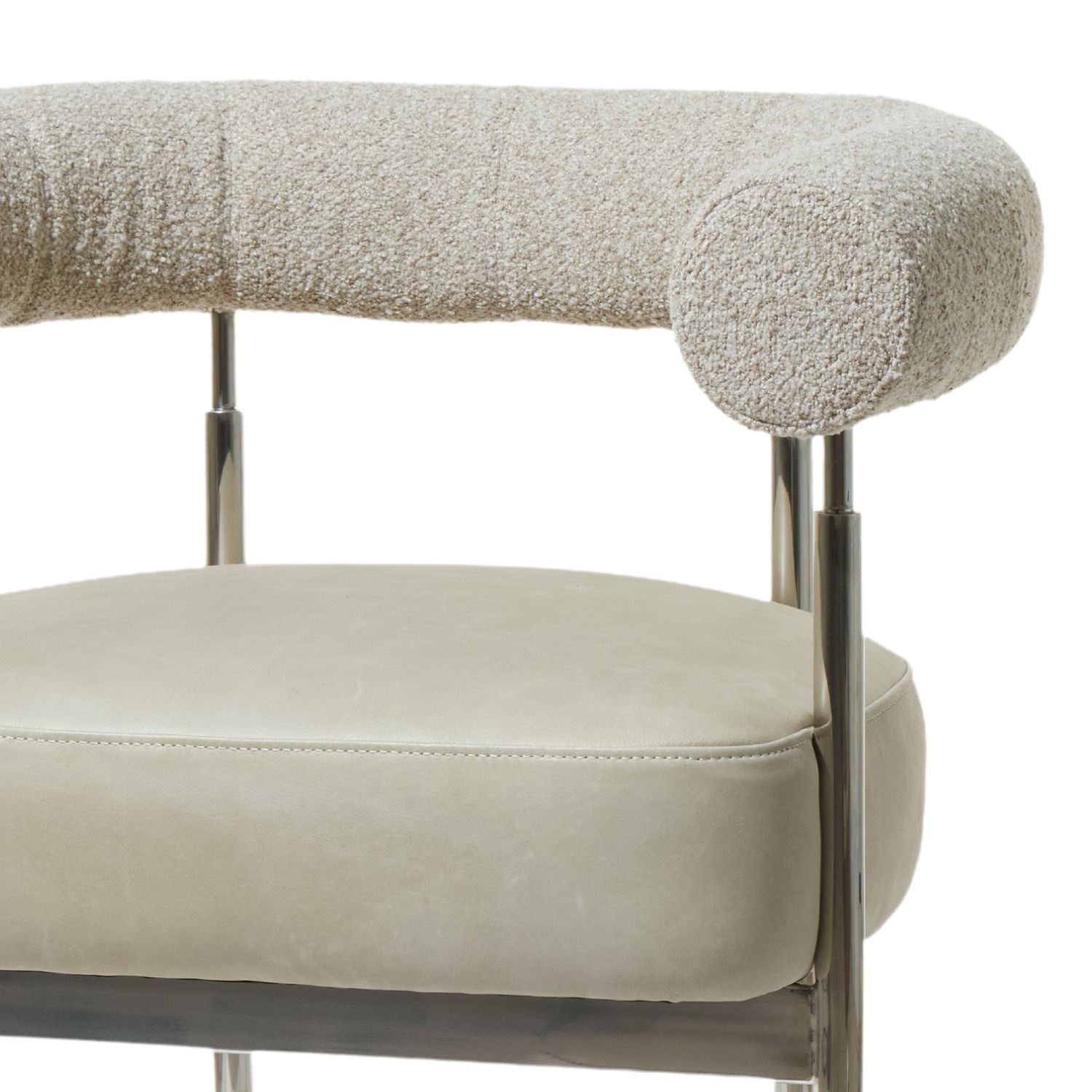 - Back: Light Grey Boucle (93% Polyester, 7% Acrylic)