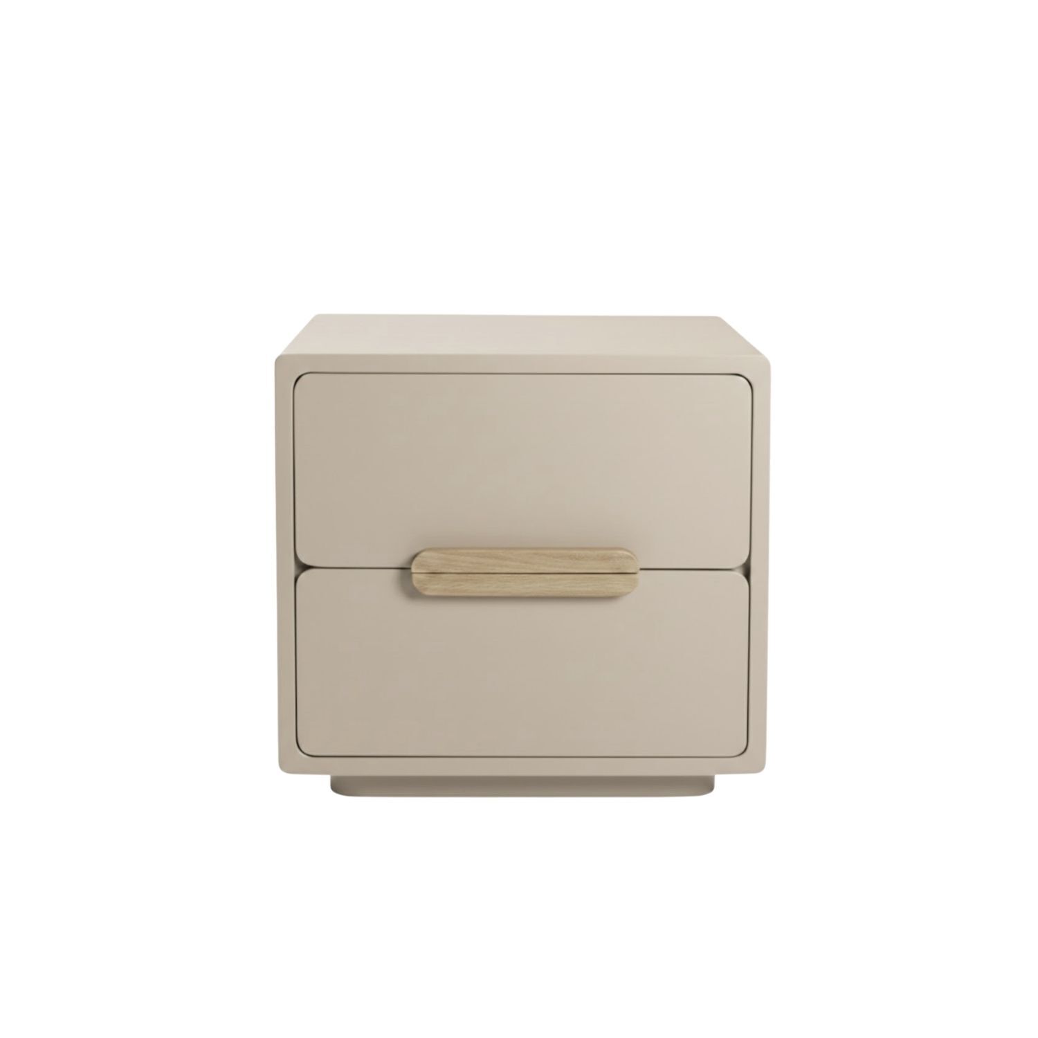 Theo's softly rounded silhouette offers a shape that feels intuitive and calm, at home alongside natural linens, aged timbers, or soft plaster walls. Two generous drawers sit flush within that gently curved frame, each finished with an integrated timber pull that keeps the surface clean and layers quietly into any palette without competing for attention.