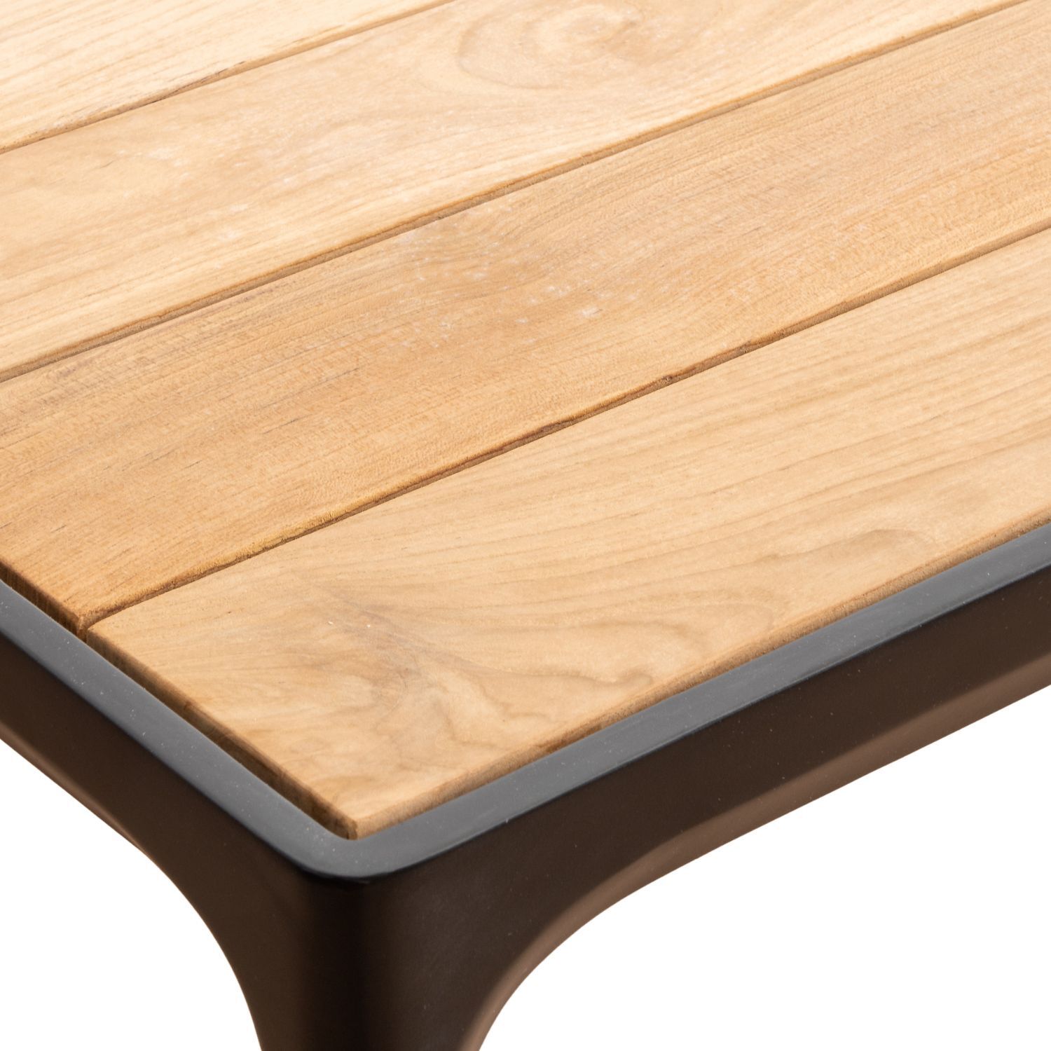 Elevate your outdoor dining experience with the Tyson Collection. The teak slat top design offers natural warmth, beautifully contrasted by a sleek white aluminium base. Subtle curves at the leg joints create a seamless and sophisticated look, perfect for those who appreciate understated elegance. To ensure the longevity of the teak, we recommend using coasters and placemats when dining.