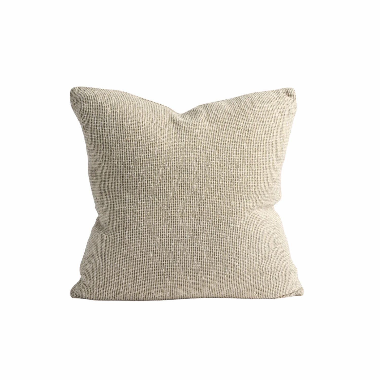 Verdure is known as the fresh green colour of lush vegetation, and it was also the inspiration behind this divine 100% linen cushion. The clever bucket weave stitch contains a textural mix of natural & olive green yarns, creating an organic and earthy appeal.